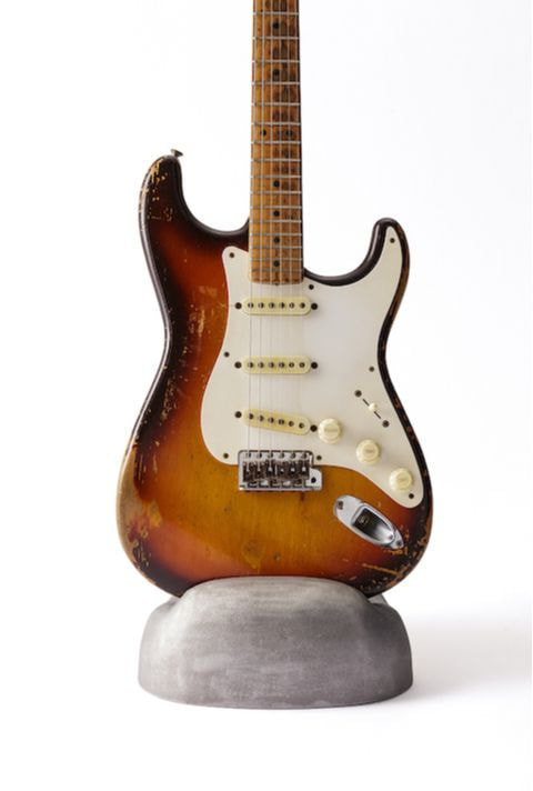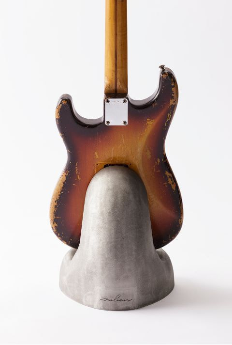 A round cord of natural leather is embedded as a cushioning material on the installation surface with the guitar.
