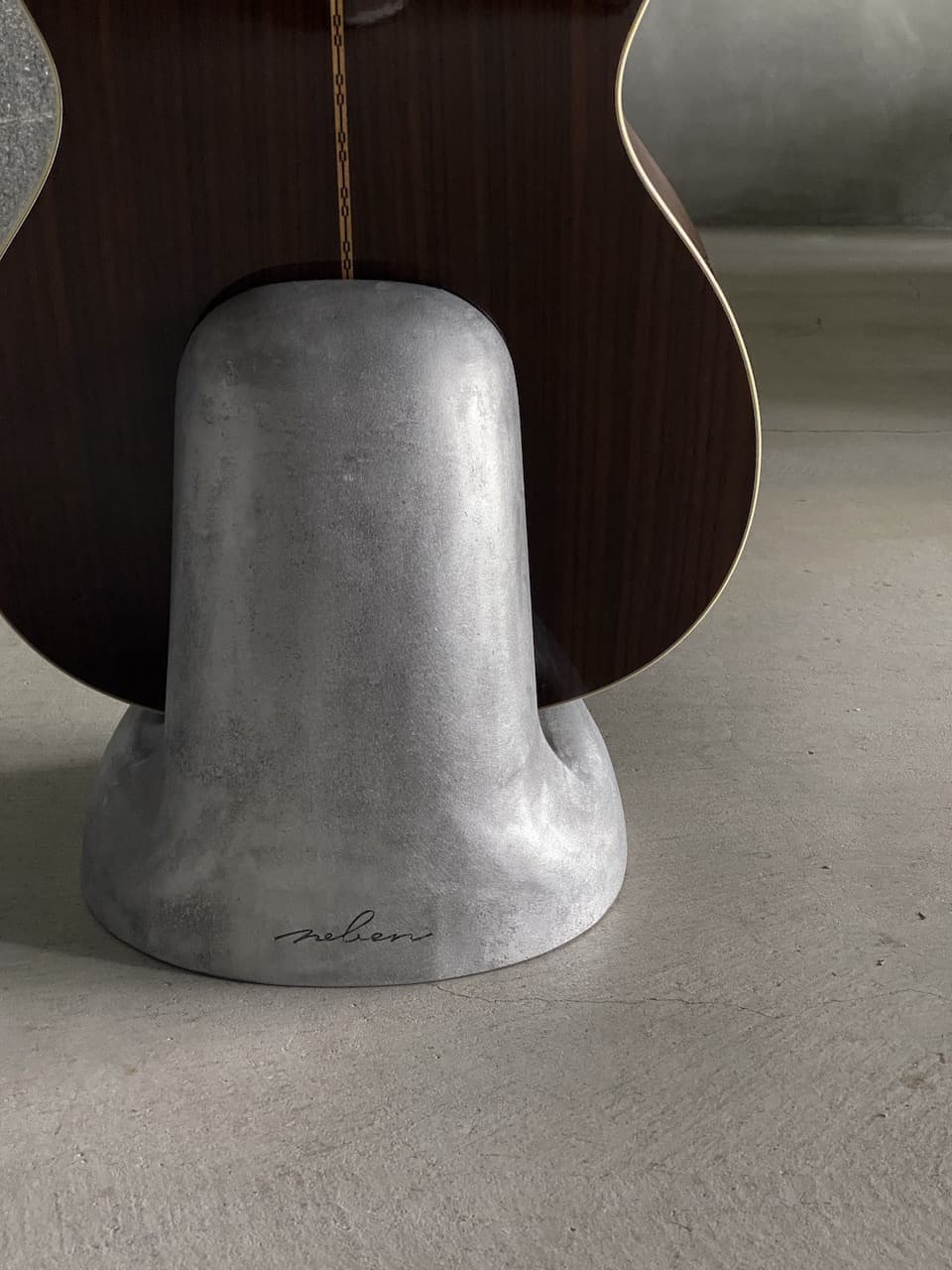 A round cord of natural leather is embedded as a cushioning material on the installation surface with the guitar.